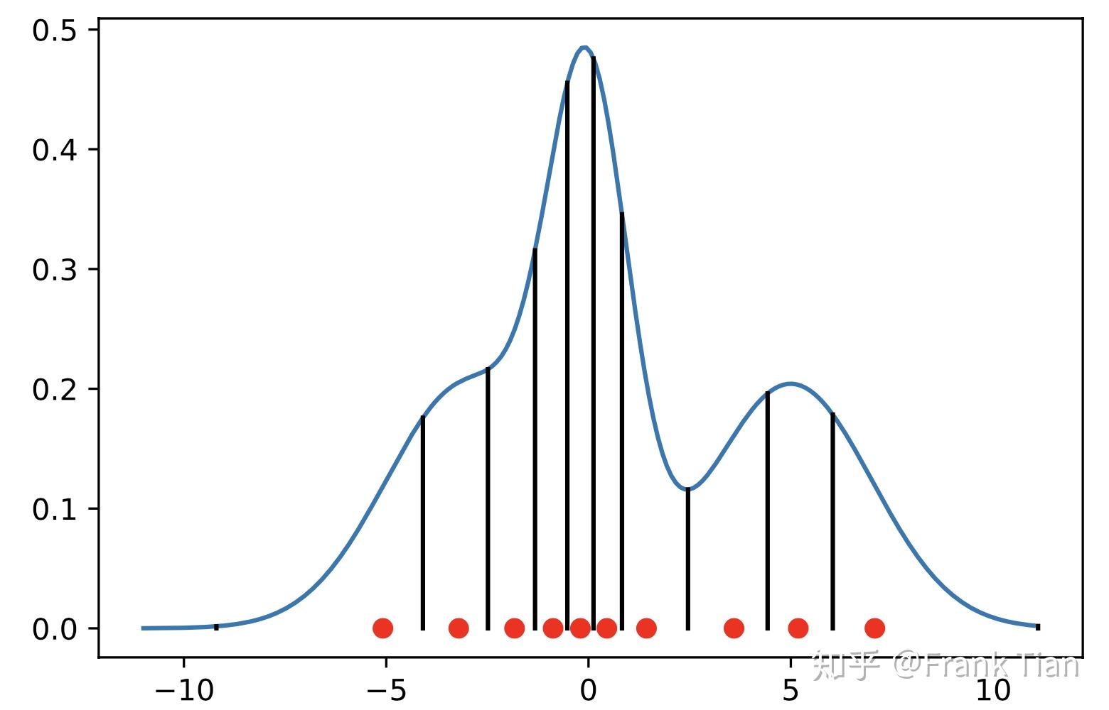 其实也很直觉,就是按照这个分布的CDF的 轴,把它均等的分成 分,例如下面的是分布的PDF的 轴,我们把它分成10等分