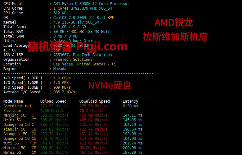 猪机博客觉得AMD-R9 3900X CPU性能还是不错,最好购买1G以上套餐,另外就是到国内网络不怎么样,不过扩展存储块后做为大盘鸡,价格非常实惠。很多站长都是买来下载,存储,中转。就是注意自律点控制上传下载速度,避免长期占用过高带宽。