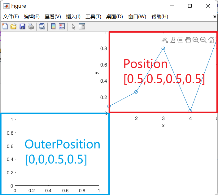 默认情况下,该属性代表意义如下绿色标注,(与OuterPosition类似,指定在figure规定范围内的坐标区域)