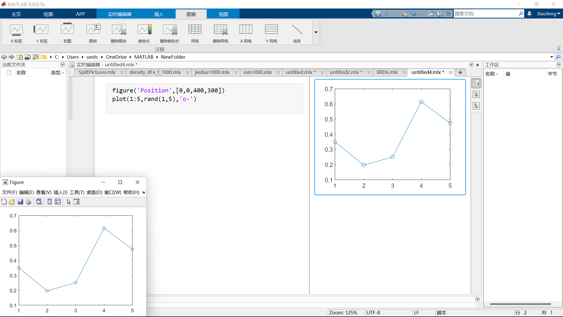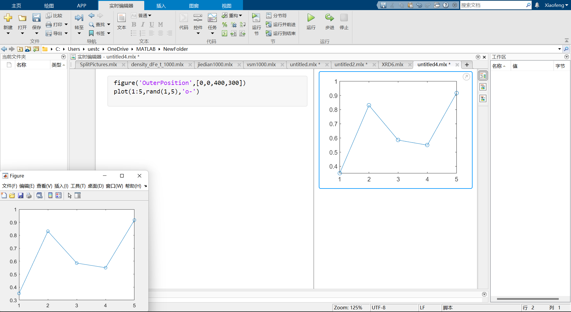 对于在实时脚本中显示的figure,OuterPosition和Position似乎没有区别;对于弹出的图窗窗口,也仅仅时坐标区外围空白区域的颜色区别(灰色和白色),如下图: