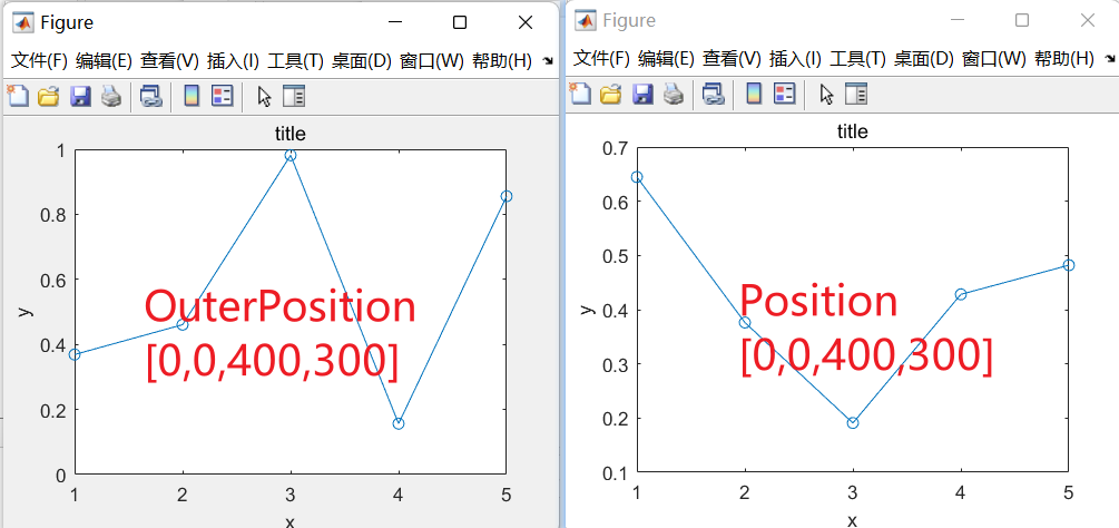 OuterPositon:指定可绘制区域的位置和大小,此区域包含图窗边框、标题栏、菜单栏和工具栏;